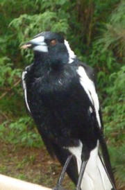 I spend most of the time standing like a statue in mid hamburger toss waiting for him to finish. Lucky Mum magpie is still hale and hearty, so if she is there, my tossing hand has something to do while I wait for her husband to eat.